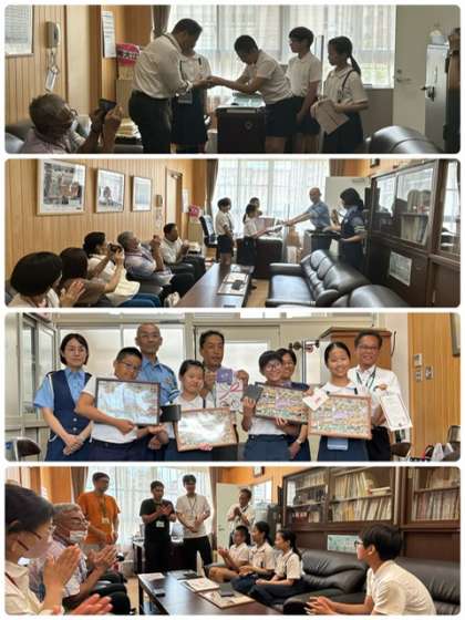 警察の自転車の大会に出場した児童たちへ東警察署の警察官の方が学校へ来られて児童たちへ表彰を行なっていただきました。児童たちが副賞でいただいた自転車2台は、子どもたちが学校で使ってほしいとの思いで寄贈していただき、植田校長先生へ鍵が手渡されました。ありがとうございました。大切に使用していきたいと思います。