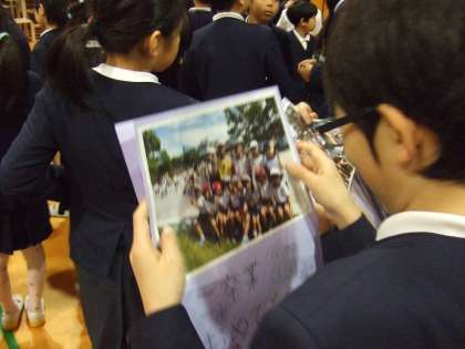 また、在校生(たてわり班)からは、一人一人の祝いメッセージ(オリエンテーリングで撮った写真付き)のプレゼントがありました!