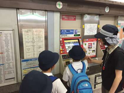 2日(金)、2年生がキッズプラザ大阪へ社会見学に出かけました。のりもの体験では、駅の券売機で一人ひとり切符を買い、地下鉄扇町駅までグループで行動しました。少し緊張しましたが、全員が目的地に着くことができました。キッズプラザの中では、買い物体験をしたり、シャボン玉の中に入ったりと楽しい体験をすることができました。