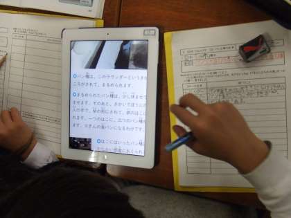 3年1組で校内授業研究会を行いました。社会科『パン工場の仕事』として、パン工場で使われる機械について調べ、生産の様子を詳しく知ることができました。指導者が事前にタブレット端末(i-Pad)に入れておいた資料を見ながら、いろいろな機械の名前やはたらきを自主的に調べることができました。