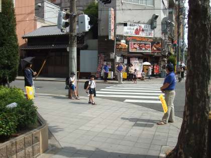 また、南大江クリーン作戦隊(子ども見守り隊)(青いジャンバー)の方々にも子どもたちの下校の安全を見守っていただいています。