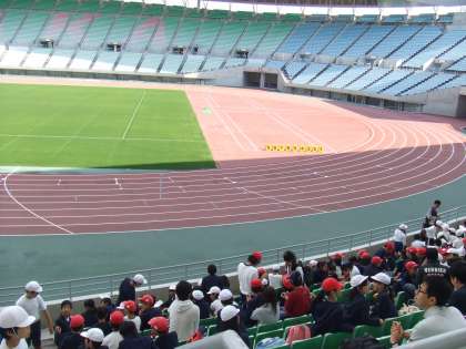 スタジアムでのお弁当タイム,午後の競技開始で集合した時の様子