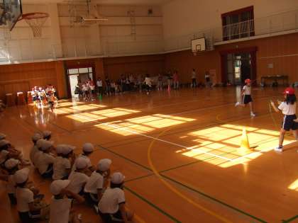 6時間目に講堂で4年生の学年集会が行われました。4年生児童・保護者・担任が一堂に会し、「かけ足とびリレー」や「大縄とび」など、楽しい時間を過ごすことができました。お母さん方が子どもチームに負けまいと、懸命に頑張っている姿が印象的でした。PTA学級委員の皆さんのご協力により、楽しい活動となりました。