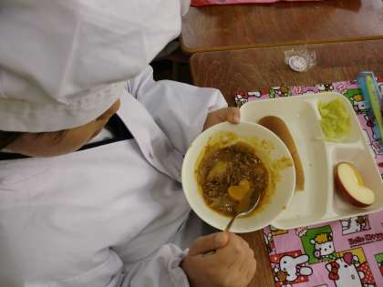 ・シチューに♥のにんじんを入れていただきました。うさぎりんごが当たったラッキーな人もいましたね!