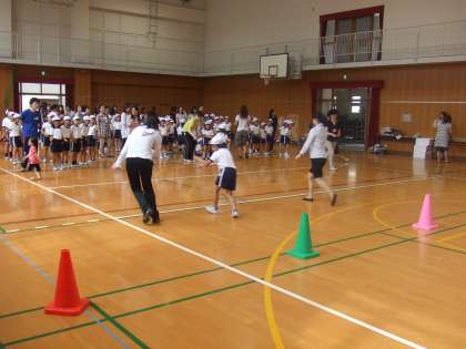 5時間目に講堂で2年生の学年集会が行われました。2年生児童・保護者・担任が一堂に会し、「スプーンリレー」をしました。クラス対抗で行われ、1回戦は子ども・保護者合同チームで、2回戦は子どもチームだけで、3回戦は子ども・保護者チームが分かれて6チームで、それぞれ競い合いました。子どもたちは、友だちやお母さん方に熱の入った応援をして大盛り上がりでした。学級委員の皆さん、保護者の皆さん、お疲れ様でした!