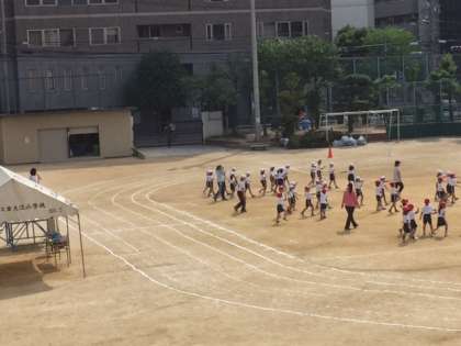 24日の運動会に向けて、練習が本格化してきました。今日の一時間目は、全体で開会式の入場から全員体操までの練習をしました。今は、一年生が団体演技の練習をしています。初めての運動会に向けて、元気いっぱいです。