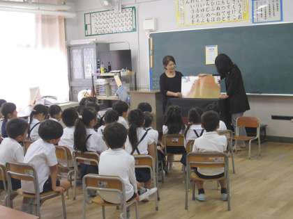 読書の秋です。本校では、今週を読書まつり週間と位置づけて様々な取り組みを行いました。図書委員会が毎朝、各教室へ行って「ほんの読み聞かせ」をしました。たくさん読書をした人に手製の「しおり」のプレゼントもしました。また、島之内図書館から読書ボランティアの方に来ていただき、お話のプレゼントをしていただきました。