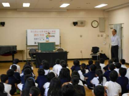 17日(火)、5年生が非行防止・犯罪被害防止教室を受講しました。中央サポートセンターから、講師をお招きし、「非行とは」「万引きについて」「声掛け被害にあわないために」の3点について学習しました。