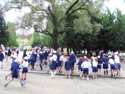 25日、大阪城公園市民の森で全校ふれあいオリエンテーリングを行いました。全校児童が30のたてわりグループに分かれ、7つのポイントをめぐりました。心配された天候も回復し、各ポイントでは子どもたちの歓声が響いていました。オリエンテーリング後はたてわり班で食事をし、ゲームも楽しみました。班長、副班長となった6年生がとても頼もしく感じられました。