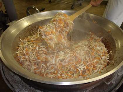 今週火曜日から始まった食育週間の「本日の給食」紹介は、今日で最終になりました。今日の給食献立は、マーボーはるさめ、チンゲンサイともやしの甘酢あえ、びわ、ごはん、牛乳でした(写真下)。一番上の写真は、マーボーはるさめを大きな木かいでかき混ぜているところです。この後、ニラが入って彩もきれいになりました。次の写真は、香川県産のびわをざるに移しているところです。今しか味わえない初夏の果物です。甘く瑞々しいびわでした!