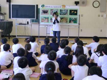 ・5年生の総合学習で、「勝間南瓜普及の会」から辰巳久子さんに来校いただき、「なにわの伝統野菜」のお話をしていただきました。