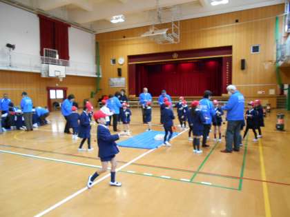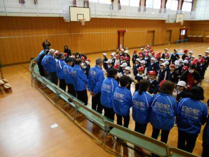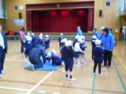 22日(月)、日頃から登下校の見守り活動でお世話になっている地域の方々に来ていただき、1年生が「むかしあそび」を教えていただきました。4つのコーナーに分かれて、こままわし、べったん、あやとり、けん玉でいっしょに遊びました。最後にお礼の意味も込めて、花束をお贈りしました。