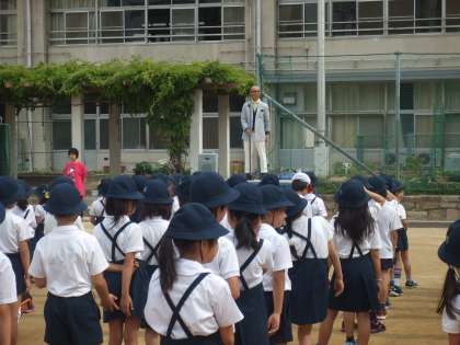 今朝の児童朝会で、校長先生より熱中症予防の話がありました。校長先生は、「熱中症にならないためにも『早寝・早起き・朝ご飯』が大切です。来週の朝会で、守れたかどうか聞きますよ。」と話されました。