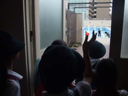 下校途中の4年生の子どもたちがそっとその様子をのぞきに来ました。