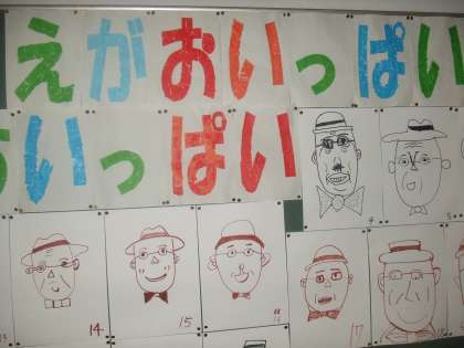 先週の児童集会で、「校長先生の似顔絵リレー」をしました。たてわり班ごとに一人一部分ずつ(目、口、帽子など)リレーのように交代しながら、画用紙に描いていきました。完成後、一斉に似顔絵を披露!校長先生は「どれも似ていますね〜!とても嬉しいですよ〜!」と感激した様子でした。
