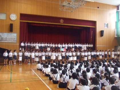 世界の国々の言葉や文化などを発表し、最後に「小さな世界」のリコーダー演奏をしました。