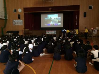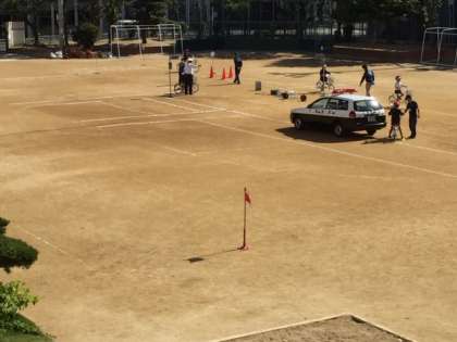 29日、東警察署、中央区役所のご協力を得て、交通安全指導を行いました。1〜3年生は安全な歩行について、4年生は自転車走行について、それぞれ模擬道路を使って学習しました。5.6年生は、自転車走行のシュミレーターを使って、危険箇所の確認方法や安全な乗り方について学習しました。