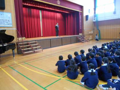 7日、3学期の始業式を迎え、久しぶりに児童の元気な声が学校内にあふれています。講堂での始業式では、校長先生から、「しっかり目標をもって行動しましょう。」とお話がありました。そのあと、児童代表から冬休みの思い出と3学期の抱負について発表がありました。
