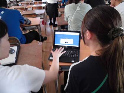 ICT担当の先生から、新しい児童用パソコンの使い方を教えてもらいました。