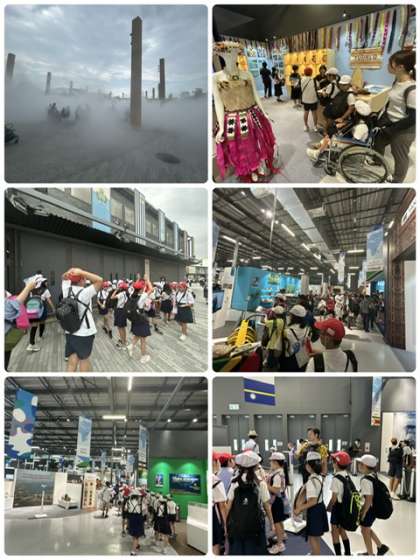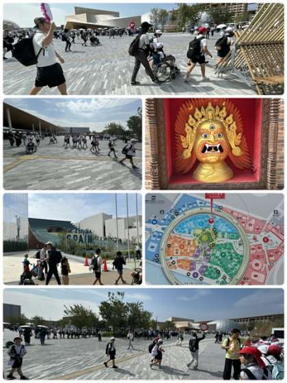 パビリオンやコモンズを回っています。大屋根リングも上がりました。