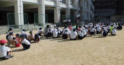 集会委員が中心となってクイズをしました。3つのヒントで、キャラクターをあてました。