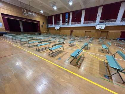 早朝から教職員とPTA役員実行委員の方のご協力で準備が進められています。