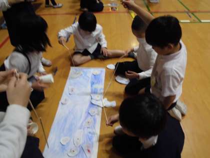 2年生が工夫して使ったおもちゃで、1年生といっしょにたのしくあそべました。