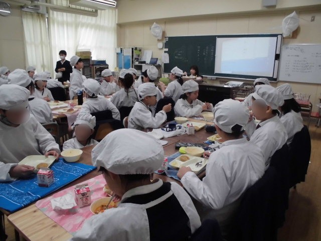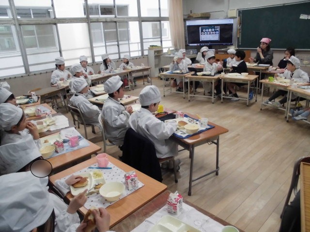 各クラスで最後の給食の時間を楽しく過ごしていました。