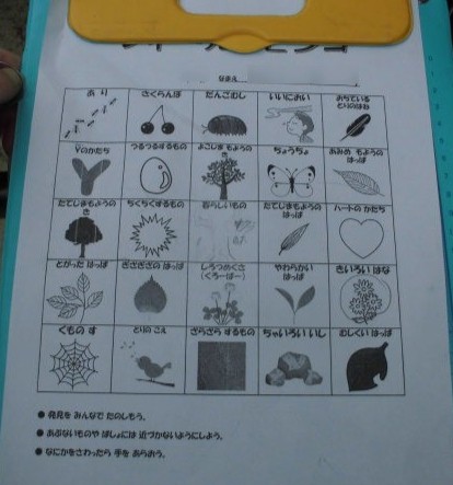 理科の時間にフィールドビンゴをしました。