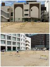 運動会後の体育では、ハードル走をしています。 ハードルとハードルの間を3歩か5歩...