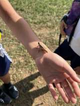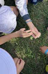 そろそろみんなが出発地点に戻ってきました! バッタやどんぐりを見せてくれました!