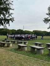 グループに別れて、班のめあてを決めて…。 さあ、みんなで元気に出発です!