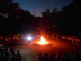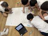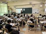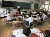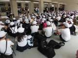 体育館で開舎式をしました。しっかり施設の方の話を聞いています。 これから部屋に入...