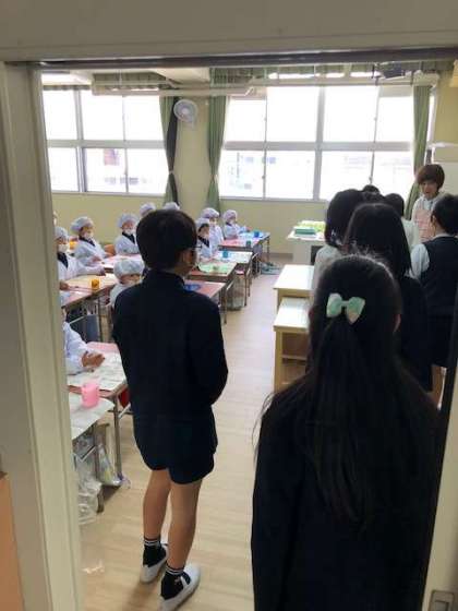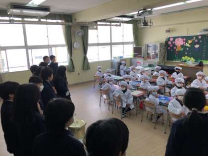 今日から給食が始まりました。1年生にとっては初めての給食。6年生が食缶を運んでくれました。どんな味がしたかな?