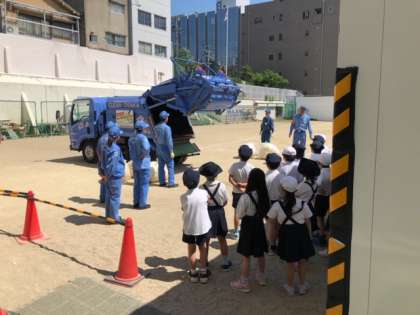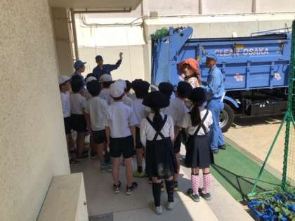 大阪市環境局のみなさんにパッカー車体験や、ごみと環境についてのお話をいただきました。