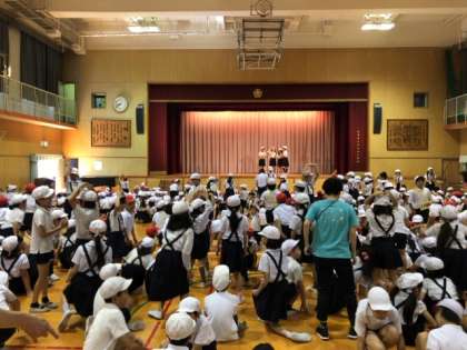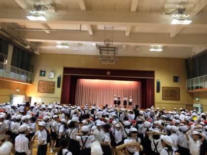 今日の集会は、初めてのたてわり班での活動でした。進化ジャンケンをしました。そのあと、代表委員さんから、来週のあいさつ週間のお知らせがありました。
