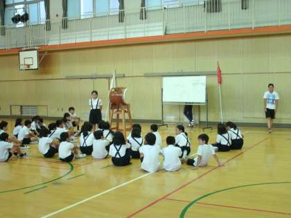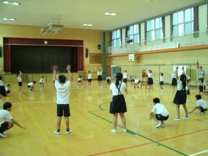 運動会の盛り上がりは、教師の指導や熱意だけでは作ることはできません。演技や競技の合間の応援団の声援が子どもたちの心を一つに団結させ、ふだんは出ないような声や力が発揮されます。その大役を果たそうと、今日もまた、放課後の講堂では、声をからして歌や発声練習にがんばる応援団の児童の頼もしい姿が見られました。