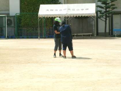 運動会練習もたけなわ。気温の上昇による熱中症被害が心配されます。その為、養護教諭が運動場の熱中症指数を計測して注意を呼びかけたり、管理作業員が昼休みにスプリンクラーで散水したりする等の対策をとって予防に努めています。