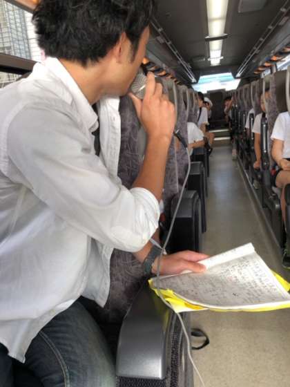 相良ガイドが案内してくれます。「みなさま、右手をご覧ください、右手に一番高くそびえ立つのが、、中指です。」盛り上がってます。