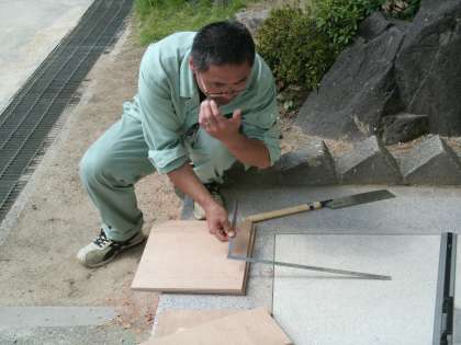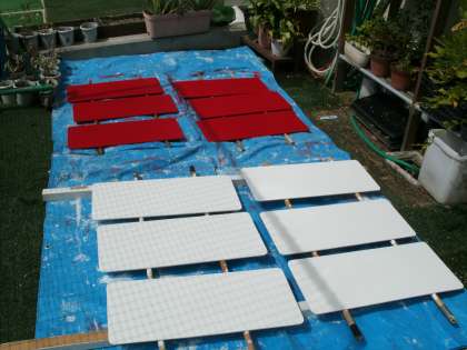今日はそんな裏方の仕事の多くを担当する管理作業員さんが、きれいに塗り替えた得点板を太陽の下に乾かしていました。さらにまた、放送機材の日よけを製作中とのことでした。