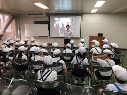 中央消防署に行き、専門的な防災の話や仕事内容の話をしていただき、装備を見せて説明してもらい、触らせていただきました。