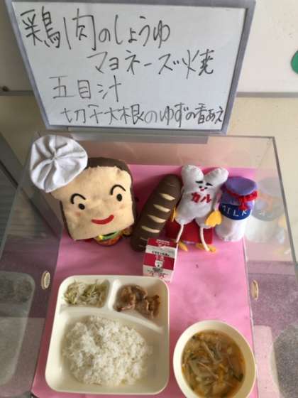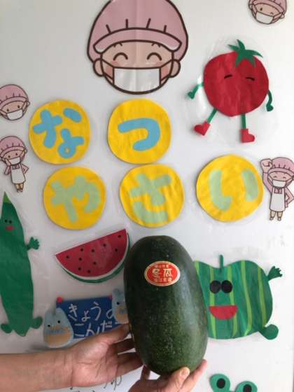 今日は給食調理員さんが夏野菜のコーナーも作ってくれました。明日の給食の食材の冬瓜をディスプレイしてくれました。楽しみですね!
