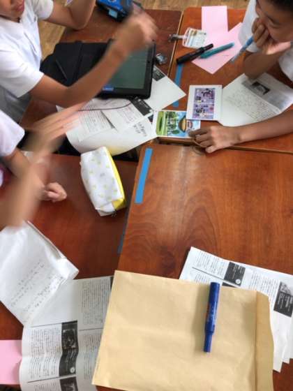 アートカードを使って、美術作品を自分の感性を働かせて鑑賞しました。その後4枚のカードを4コマ漫画のように組み合わせてお話を作りました。