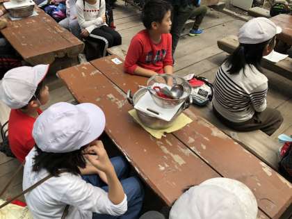 下山してすぐに飯盒炊爨の準備です。カレーライスをつくります。