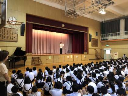 代表の子から二学期がんばることの発表や、先生から二学期からの生活についてのお話がありました。