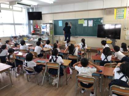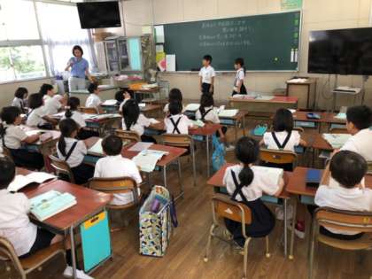夏のできごとを発表したり、二学期の準備をしたりしています。