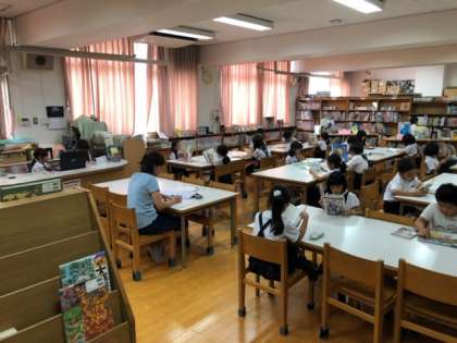 図書の時間です。静かに読書しています。受付も自分たちでします。
