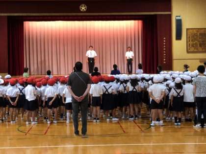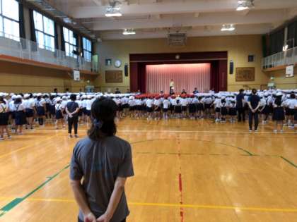9月になりました!今日の朝会では、時間を守ることのお話や、社会を明るくする運動の絵画表彰、教育実習の先生の紹介がありました。