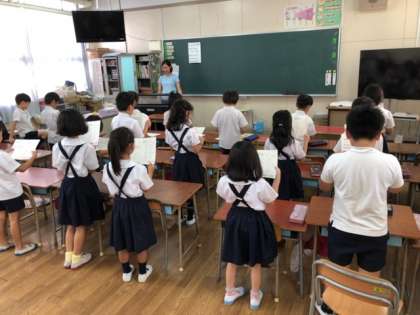 音楽では運動会の歌を歌います。澄んだ歌声がかわいいです。