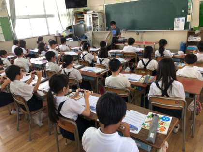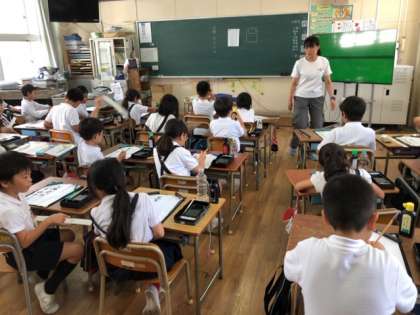 書写の時間はまずは大切な自分の名前の練習から始めます。筆で書くと難しいですね。